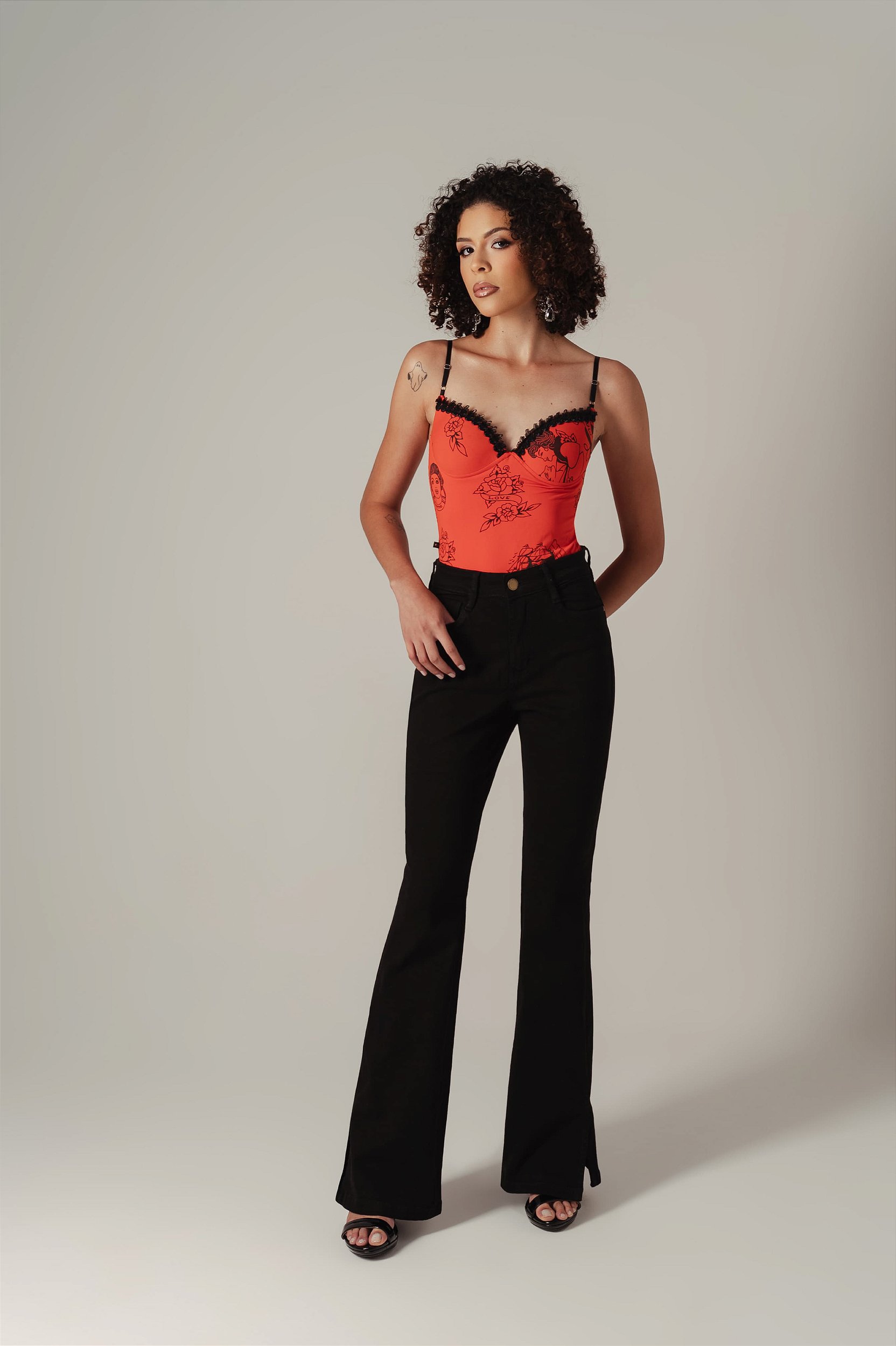 A Calça Flare preta peça indispensável para quem busca um look sofisticado e moderno. Com modelagem ajustada até o joelho e abertura sutil na barra, ela alonga a silhueta e traz um ar de elegância para qualquer visual.
